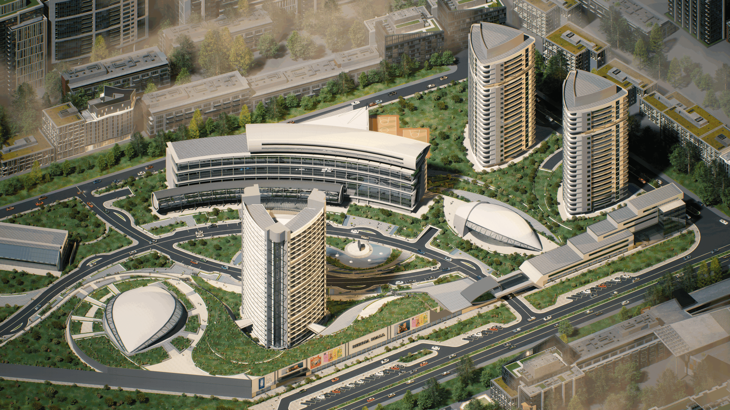 Media University (5 floors) with schools (3 floors) and a hall with a capacity of 1000 person.