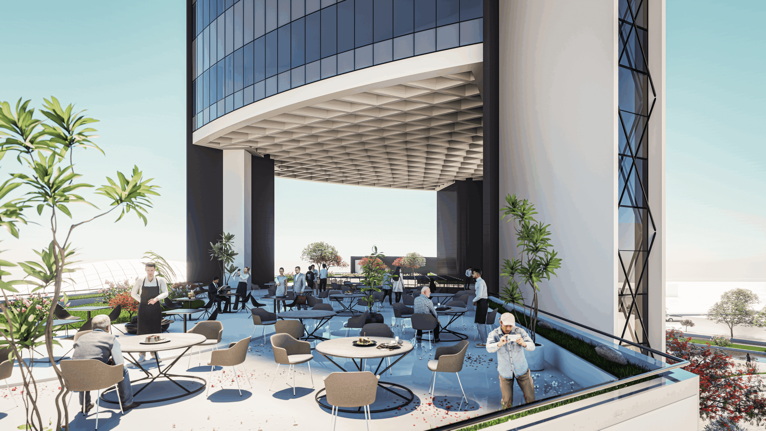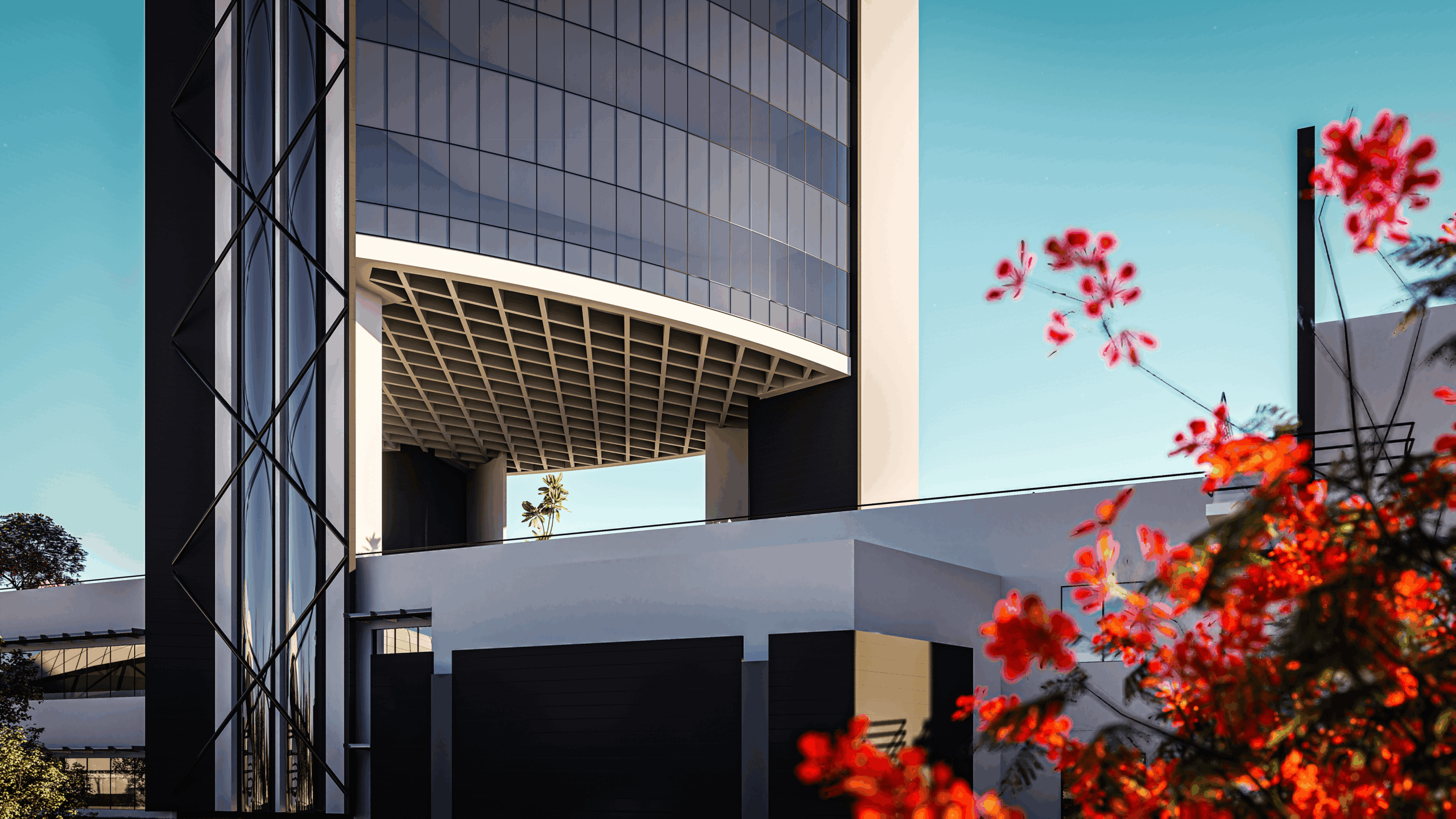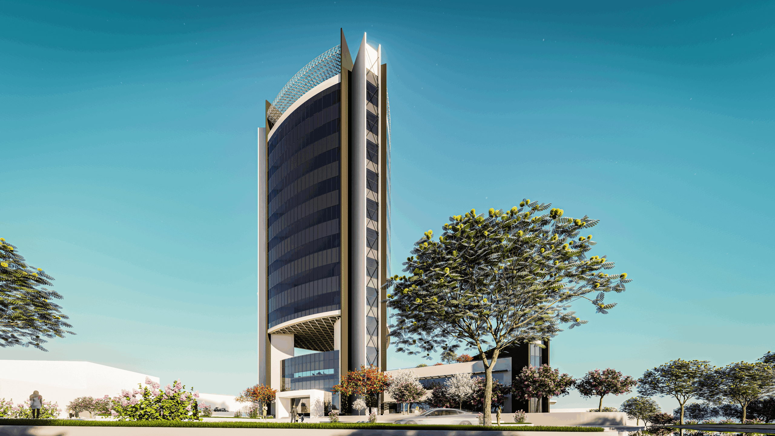 Engineering is based on three pillars: (function, safety, and economy). This idea was borrowed (architecturally and structurally) to design the office tower with a three-sided horizontal plan based on only three pillars (which include elevators and staircase cores) and without columns.